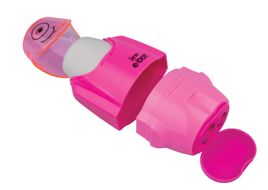 Présentoir de 24 taille-crayons DOUBLE avec efface E-BOT NÉON