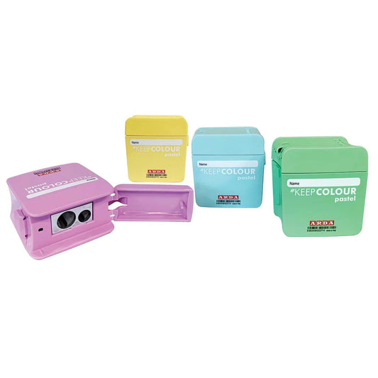 Présentoir de 12 tailles-crayons DOUBLE plastique (couleurs variées)
