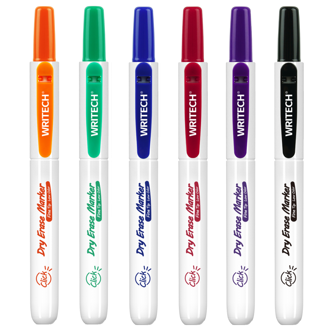 Ensemble comprenant 3 ou 6 marqueurs non-permanents rétractables. Encre à faible odeur qui s'efface proprement et qui est idéal pour les salles de classes, les bureaux et la maison. À utiliser sur les tableaux blancs et les surfaces non poreuses.