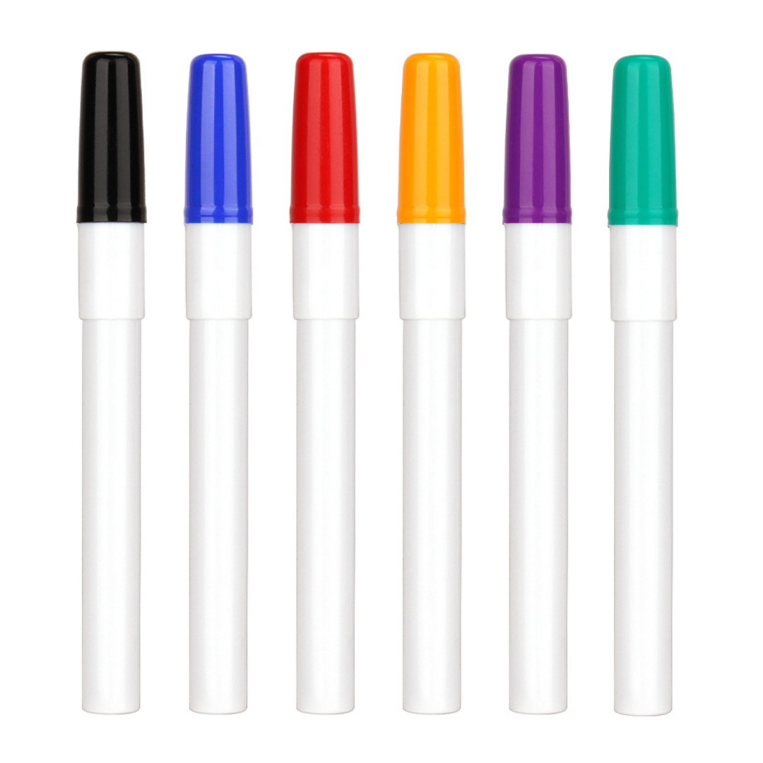 L'ensemble de 6 marqueurs comprend les couleurs noir, bleu, rouge, orange, turquoise et mauve.