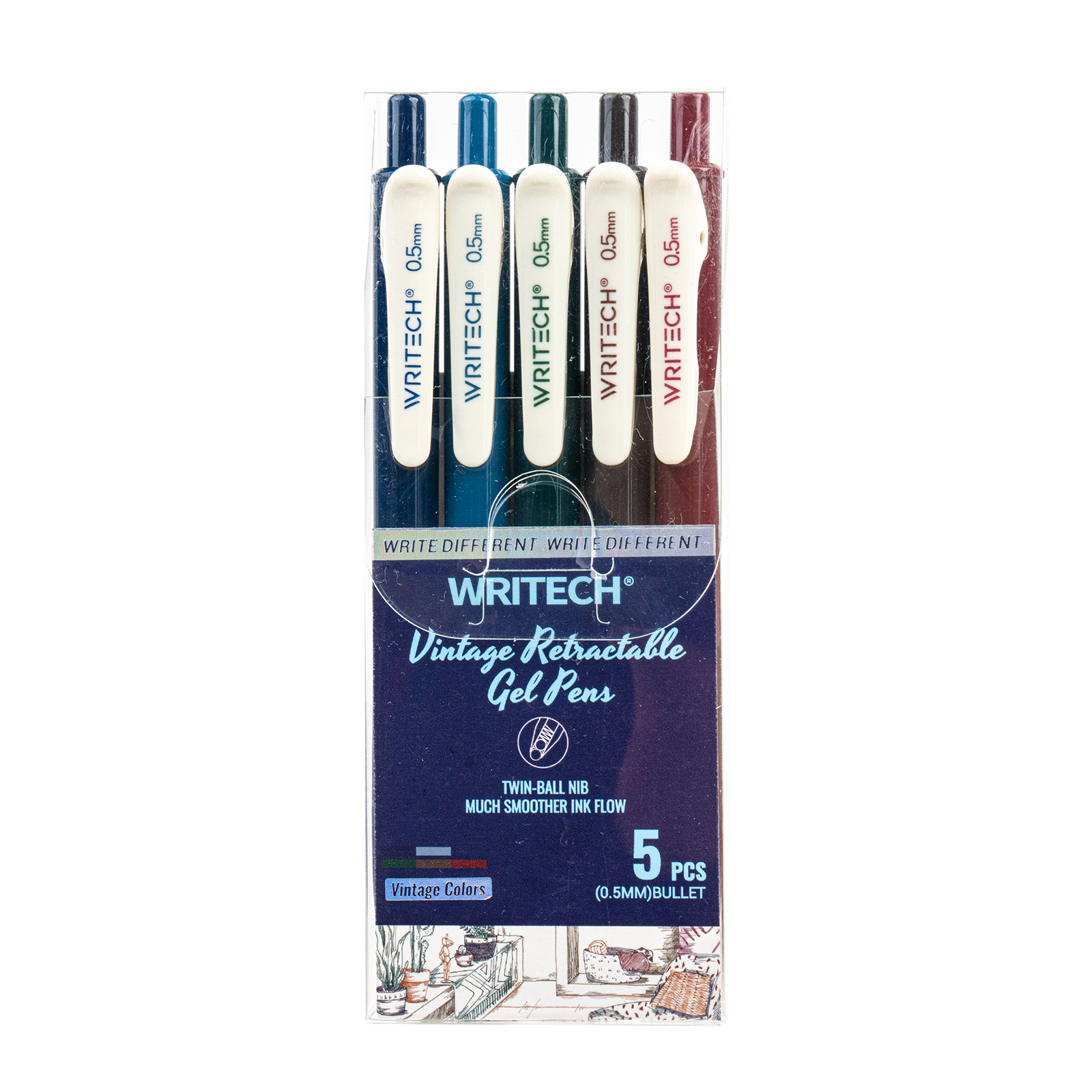 Le stylo gel rétractable 0.5mm VINTAGE est doté d'une double bille pour une écriture lisse et sans bavure. Ses couleurs vintage uniques donneront une touche d'originalité à vos créations.